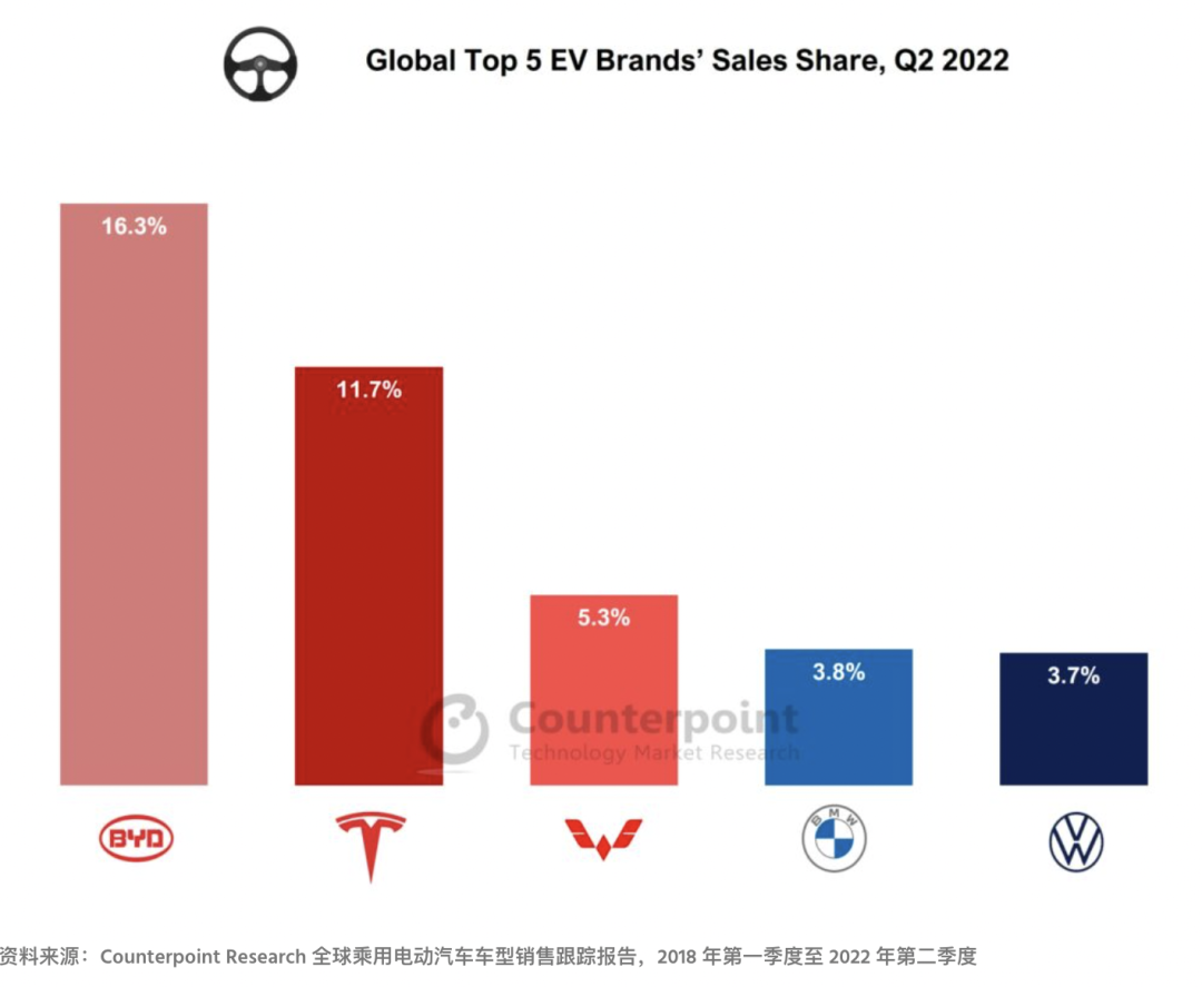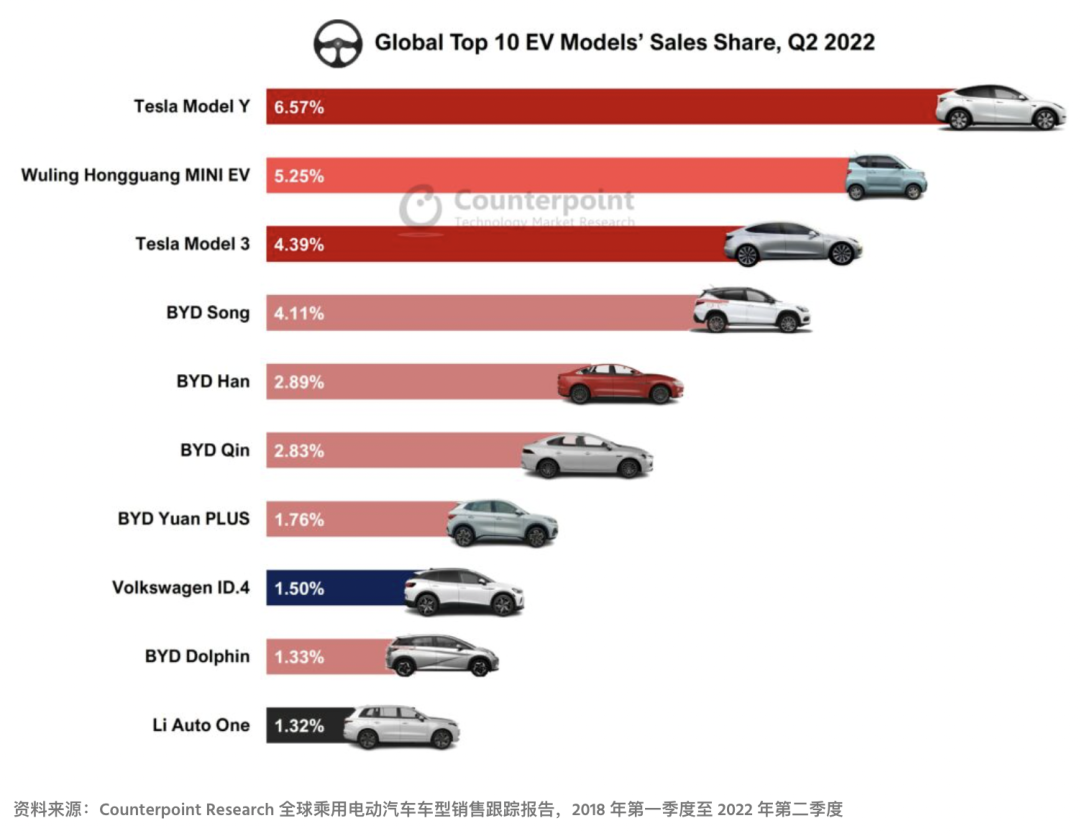 Counterpoint:2022 年第二季度全球电动汽车销量同比增长 61%