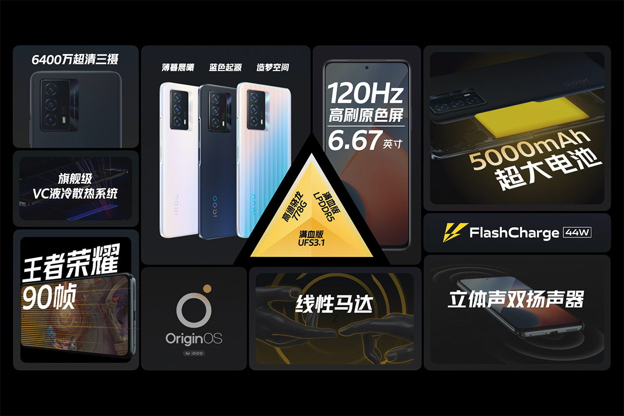 iQOO新品发布会于线上举行,新一代“功用前锋”iQOO Z5正式发布。iQOO Z5装备“满血”强悍功用装备,带来高功用、长续航及畅爽文娱体会,iQOO更是初次将旗舰机专属的满血版UFS 3.1和满血版LPDDR5装备下放至千元价位,一起产品外观设计上也向中高端产品看齐,再一次拉升群众级功用机标杆。iQOO Z5功用装备全面晋级,并装备旗舰级VC液冷散热体系,带来耐久安稳的功用输出。iQOO Z5更是运用了5000mAh超大容量电池,能够带来更耐久的续航时刻。